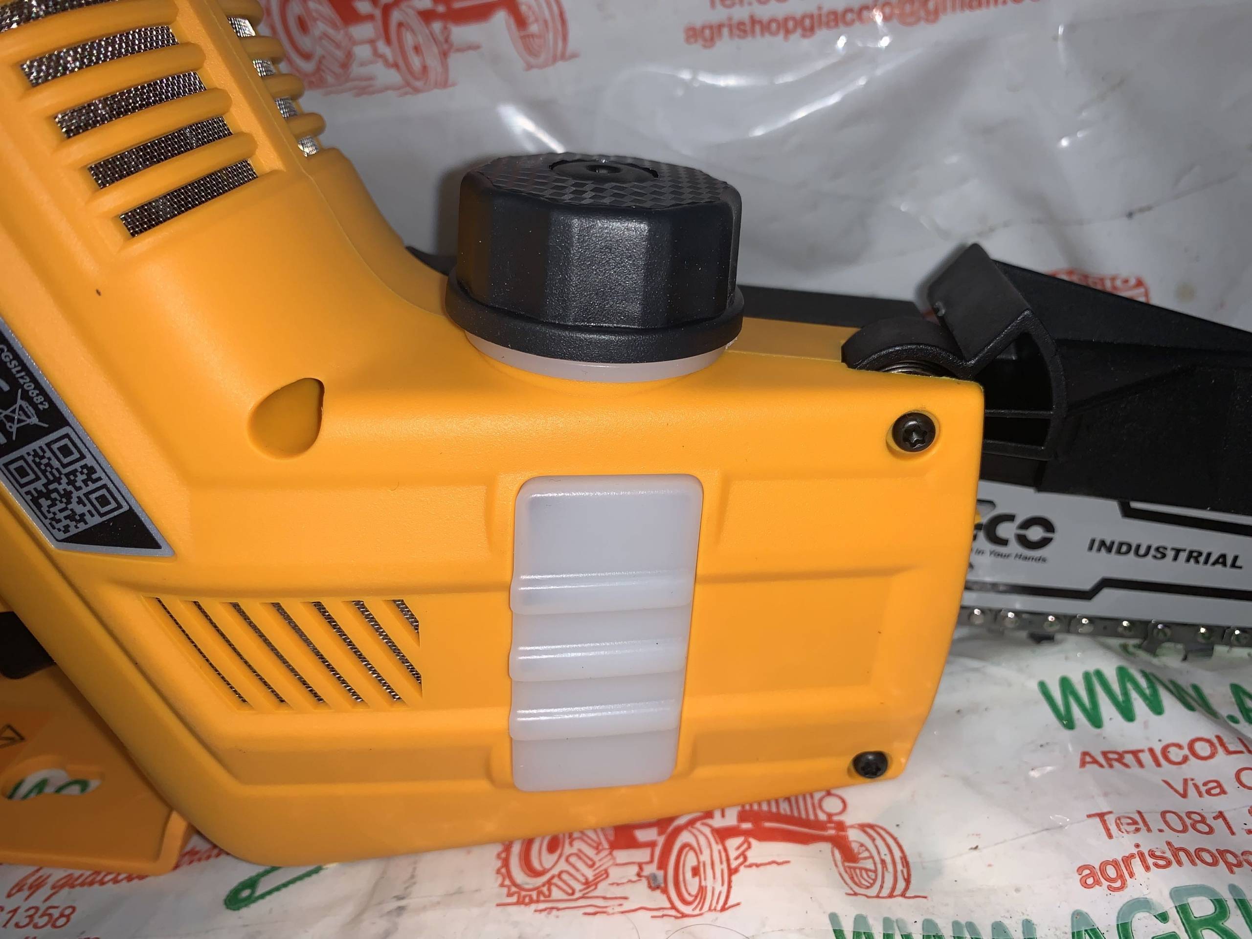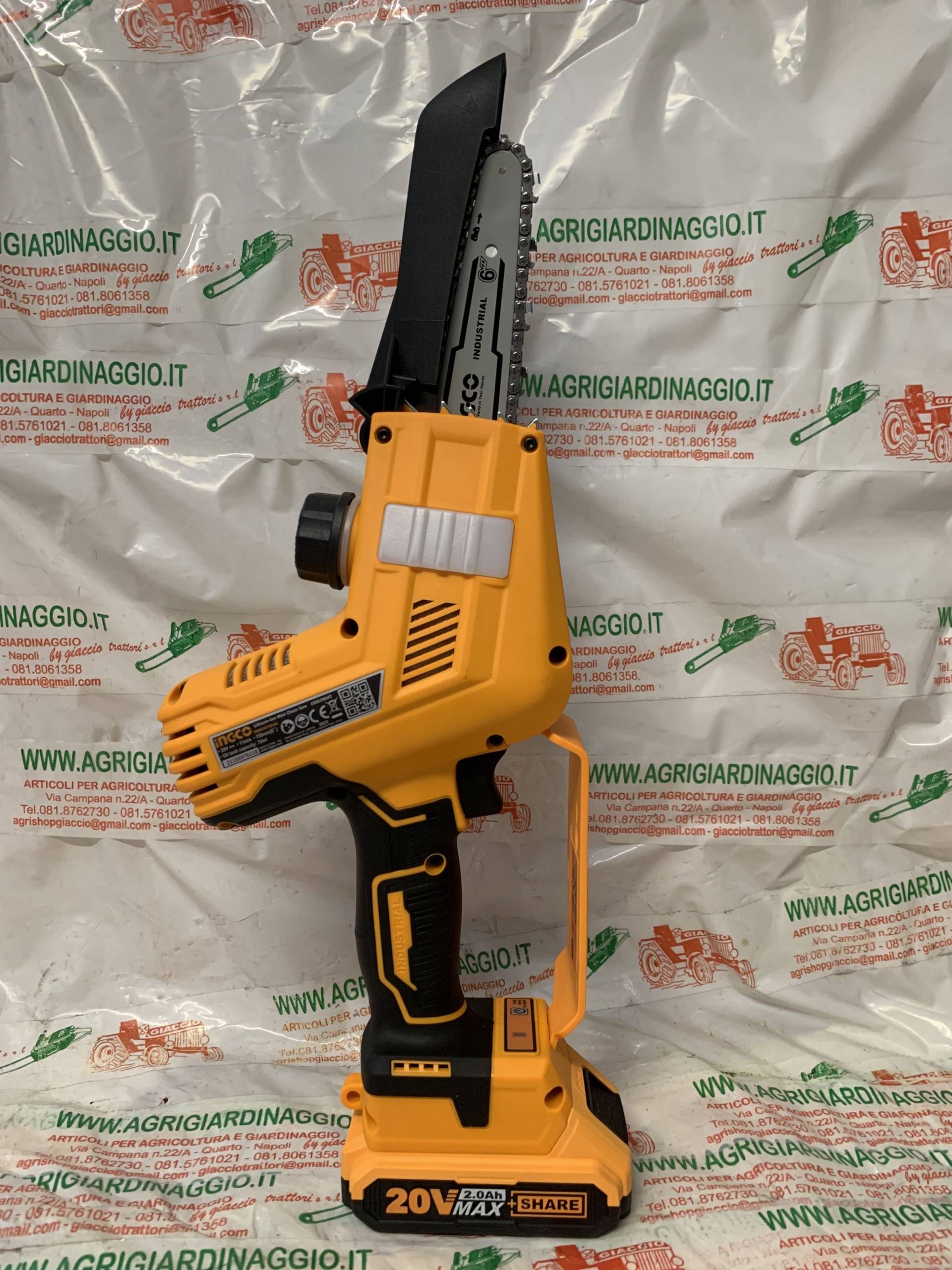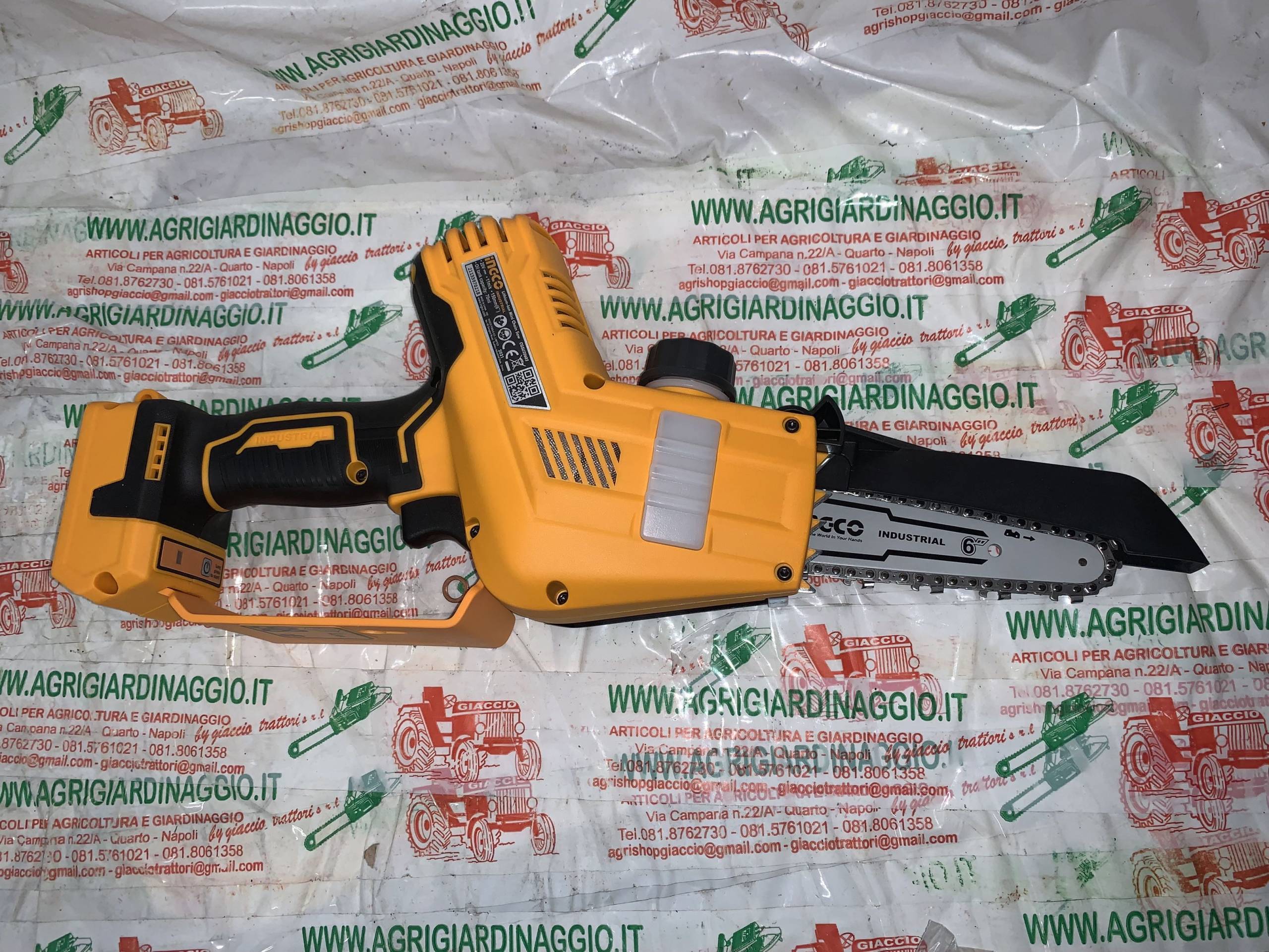 Puoi consultare la pagina sorgente del prodotto: https://www.agrigiardinaggio.it/prodotto/motosega-potatura-a-batteria-20-volt-ingco-cg-sli20682-motore-brucelles-pompa-olio-automatica/