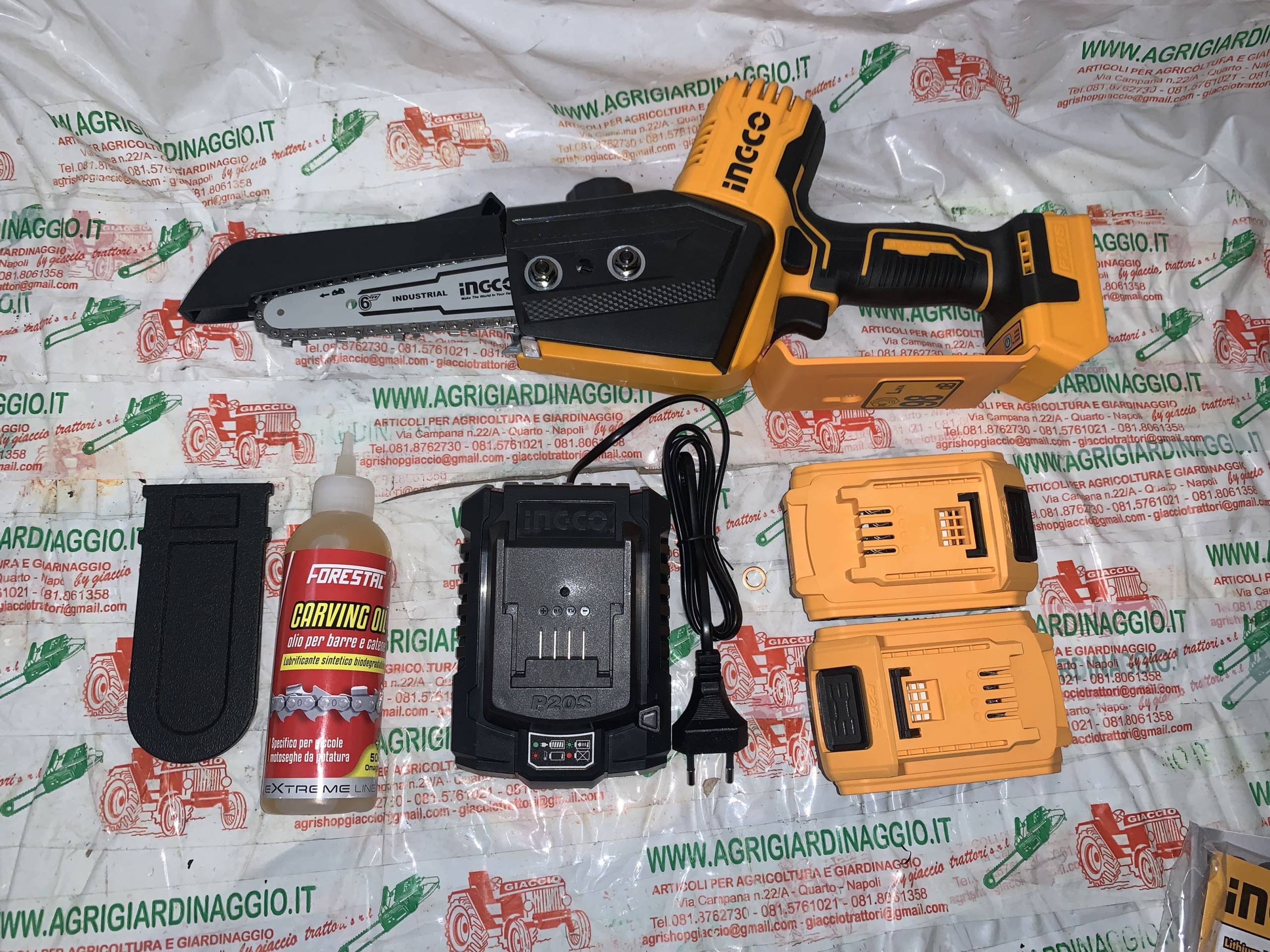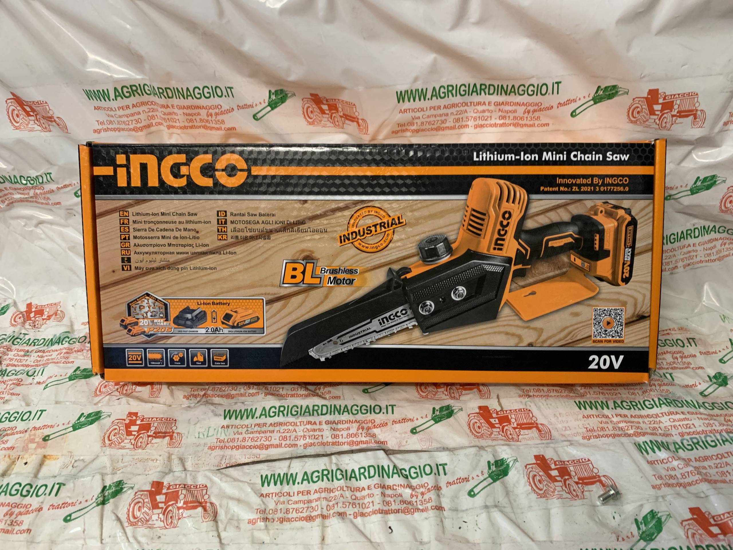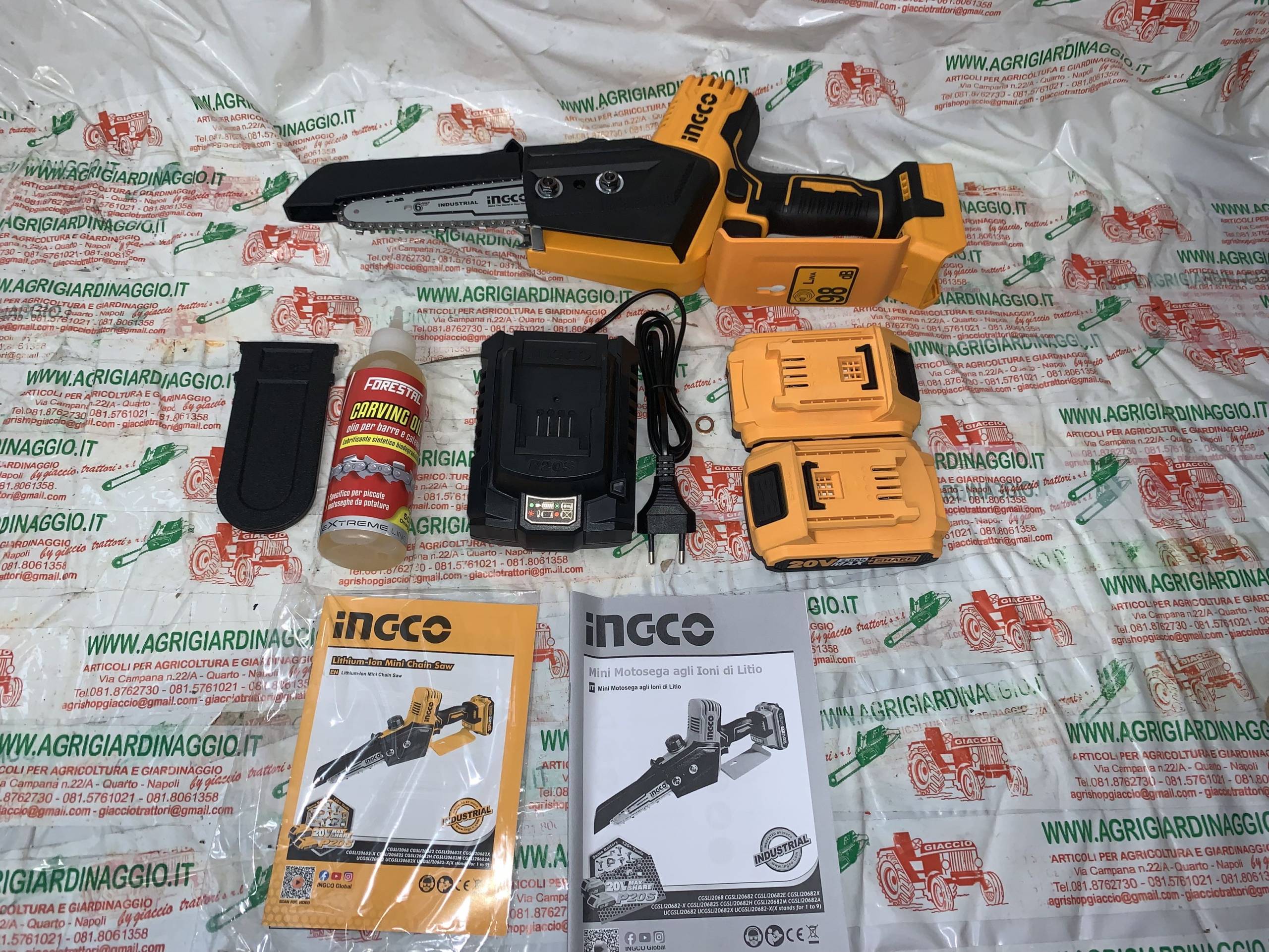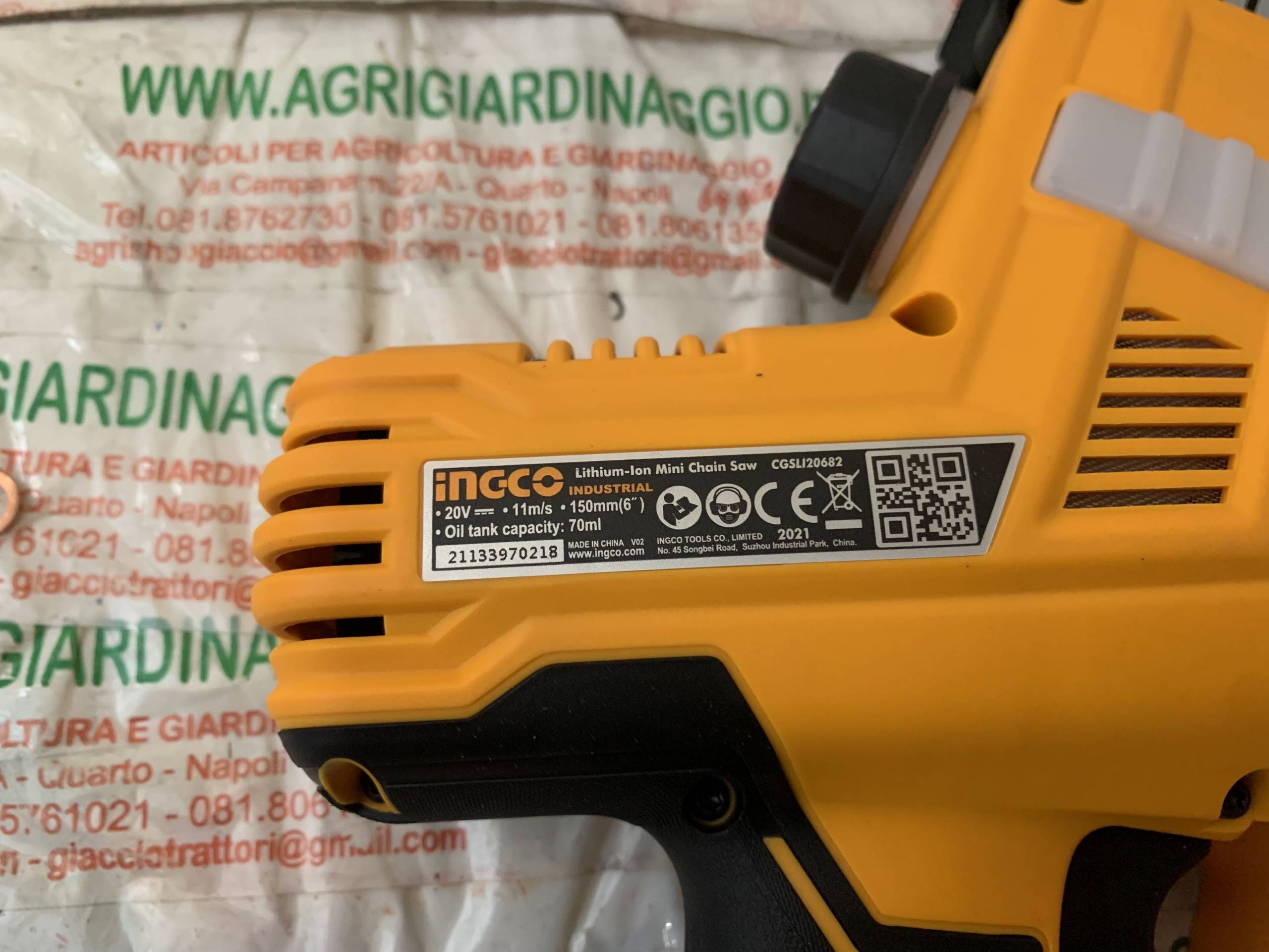Puoi consultare la pagina sorgente del prodotto: https://www.agrigiardinaggio.it/prodotto/motosega-potatura-a-batteria-20-volt-ingco-cg-sli20682-motore-brucelles-pompa-olio-automatica/